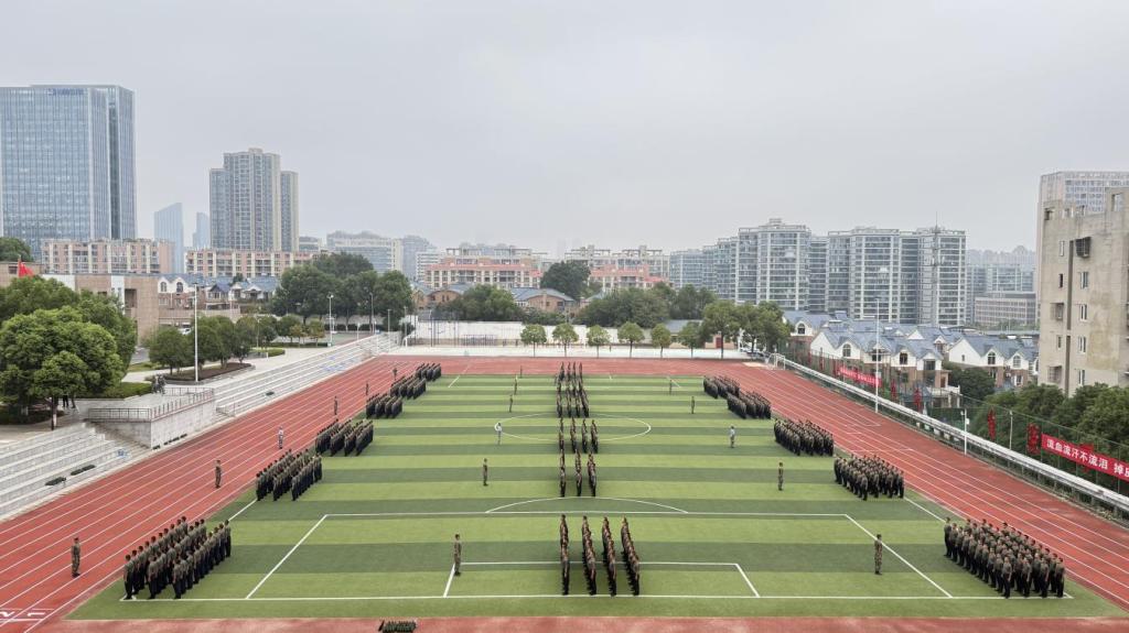 训练场上,新生们以烈日为熔炉,千百次重复的转体、走齐步、踢正步……,每一次摆臂、每一次踢腿、每一声口号都凝聚着钢铁意志、激荡着青年意气,铿锵踏碎热浪;班级如磐石般列阵,松散身姿变得坚毅挺拔,自律自立转化为自觉行动,青春豪情在筋骨与意志的双重淬炼中升腾。