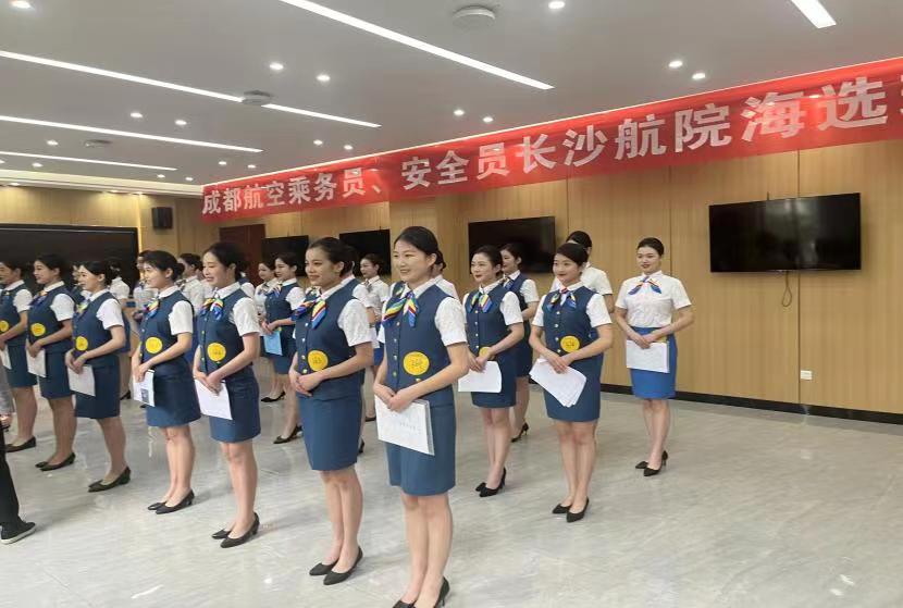 招聘分海选、初试和复试三个流程。通过海选的同学将在VR教室进行身高测量和初试,经过层层筛选,最后共有18名同学进入复试,面试官们以严格的标准,严谨的态度,专业的眼光对每一位面试者进行了多方面的素质能力考核,同学们始终姿态端庄优雅,展现出极强的亲和力,自信从容地回答每一个问题,凭借优异表现获得面试官的一致高度评价,最终录取结果将会通过短信形式通知到学生。此次为期2天的成都航空招聘会取得圆满结束。