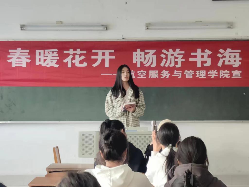 参加本次活动的学生经过事先充分准备,依次走上讲台,积极展示自己分享的书本,他们结合自身阅读感悟进行书目推荐,用最精简的语言来表达书本中的内容,让大家知道鲁迅那幽默风趣的文字中对社会的批判,以及用自己不平凡的作品折射出现实主义之光的路遥先生的《平凡的世界》等好书。同学们在把握好解说节奏的同时,对所推荐书目的内容概况进行了生动阐述,展示了自己对书籍主旨的思考和深入独到的理解,引发了听众的强烈共鸣。在空乘2101班吴雨桐看来,《追风筝的人》中的“风筝”是象征性的,它代表着现实生活中一切美好的事物。“我想通过这本书告知大家,不完美的我们在成长过程中终究能追寻到属于我们的‘风筝’。
