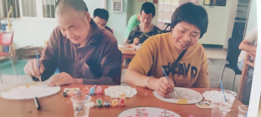 随后,志愿者们精心设计了清明主题的“时节彩蛋”手工游戏。进行场地布置、分工安排后,志愿者们开始一对一、手把手地辅导他们进行手工彩蛋绘制。经过耐心细致的讲解,残疾朋友的动作逐渐从生硬到娴熟,绘制的彩蛋也十分精美,天马行空的彩蛋上,满是他们对美好生活的祝福与期盼。活动结束前,志愿者们带领他们一起开展了萝卜蹲游戏,大家三人一组,手拉手围成一个圈,现场的欢呼笑语中将整个游戏推向了高潮。
