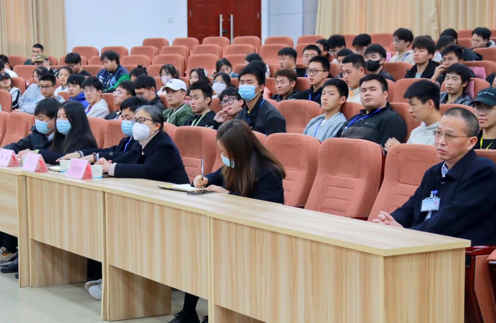 最后,许文斌书记针对当前学生在学习、作风、纪律等习惯方面存在的偏差,和现实表现,结合党的二十大精神学习,以“小我融入大我,做有为有位青年”为主题,从2022年最美大学生、大国工匠事迹着手,教育引导同学们结合实际深入学习领悟党的二十大精神,深入浅出,从学习、工作、生活为落脚点培养提升自我综合能力提出希望。希望同学们学思践悟,珍惜大好年华,将个人理想追求汇入到中华民族伟大复兴中来,践行小我融入大我,立志做有理想、敢担当、能吃苦、肯奋斗的新时代好青年。